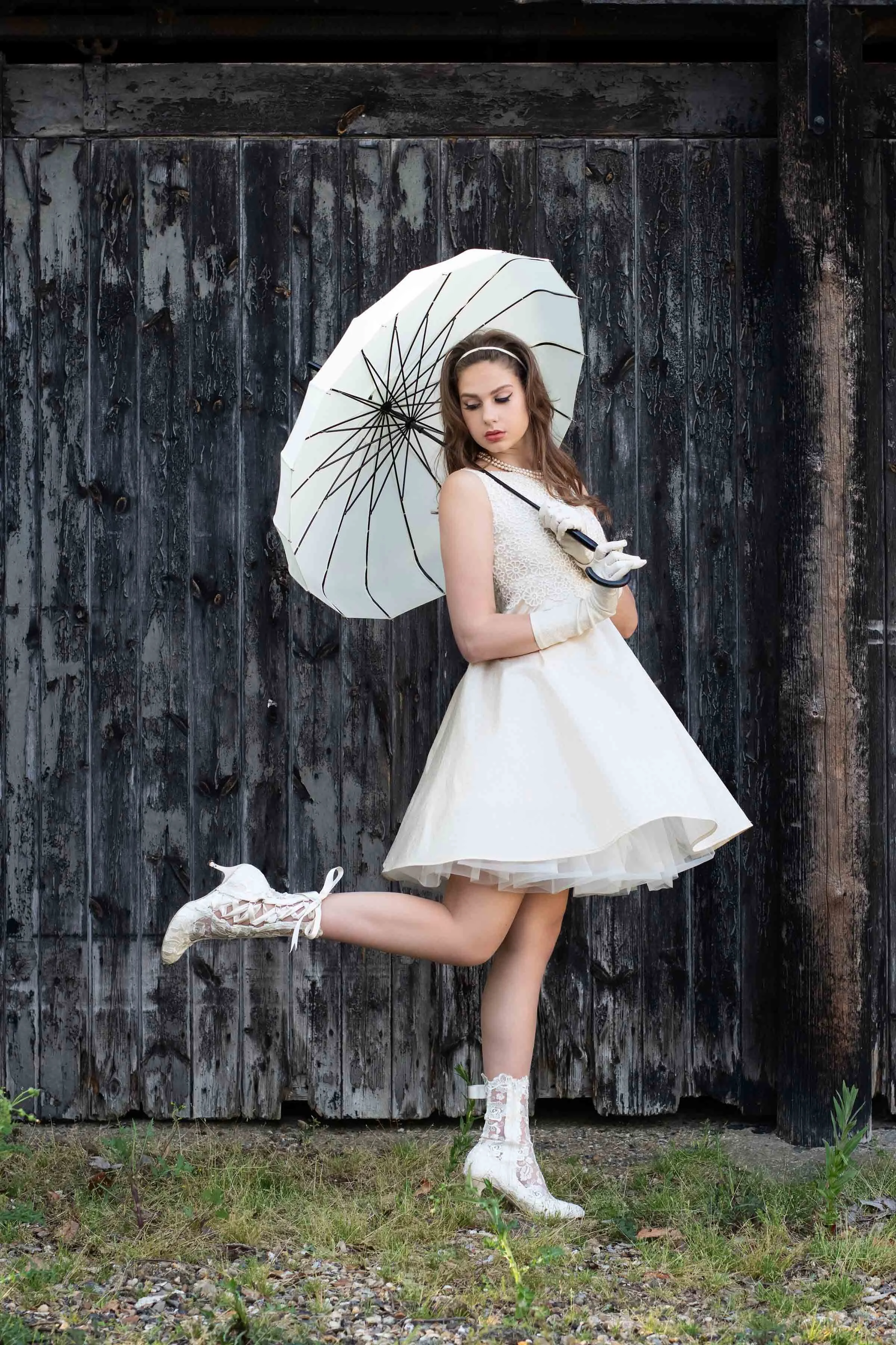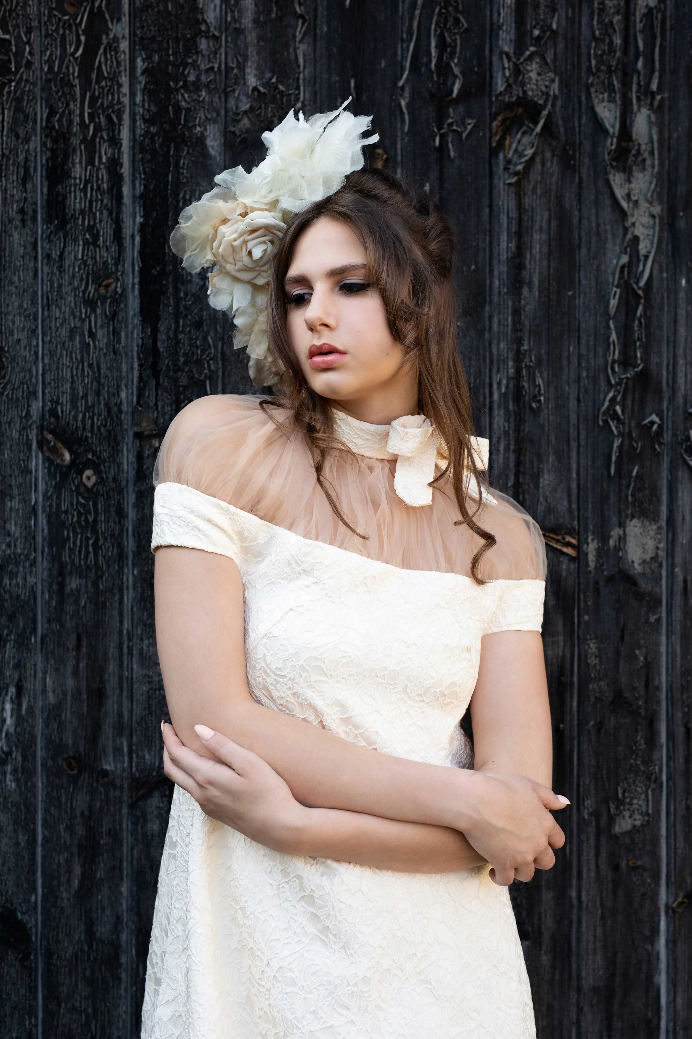 A capsule collection of short dresses inspired by Saragaglia’s mum’s wedding dress and the 60’s infamous “Piper” club in Rome. Simple A-line shapes, net underskirts, fine laces, and silks give this collection a frisky yet elegant look.